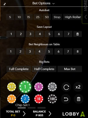 - There’s a full range of call bets, with the ability to choose number of neighbour bets.